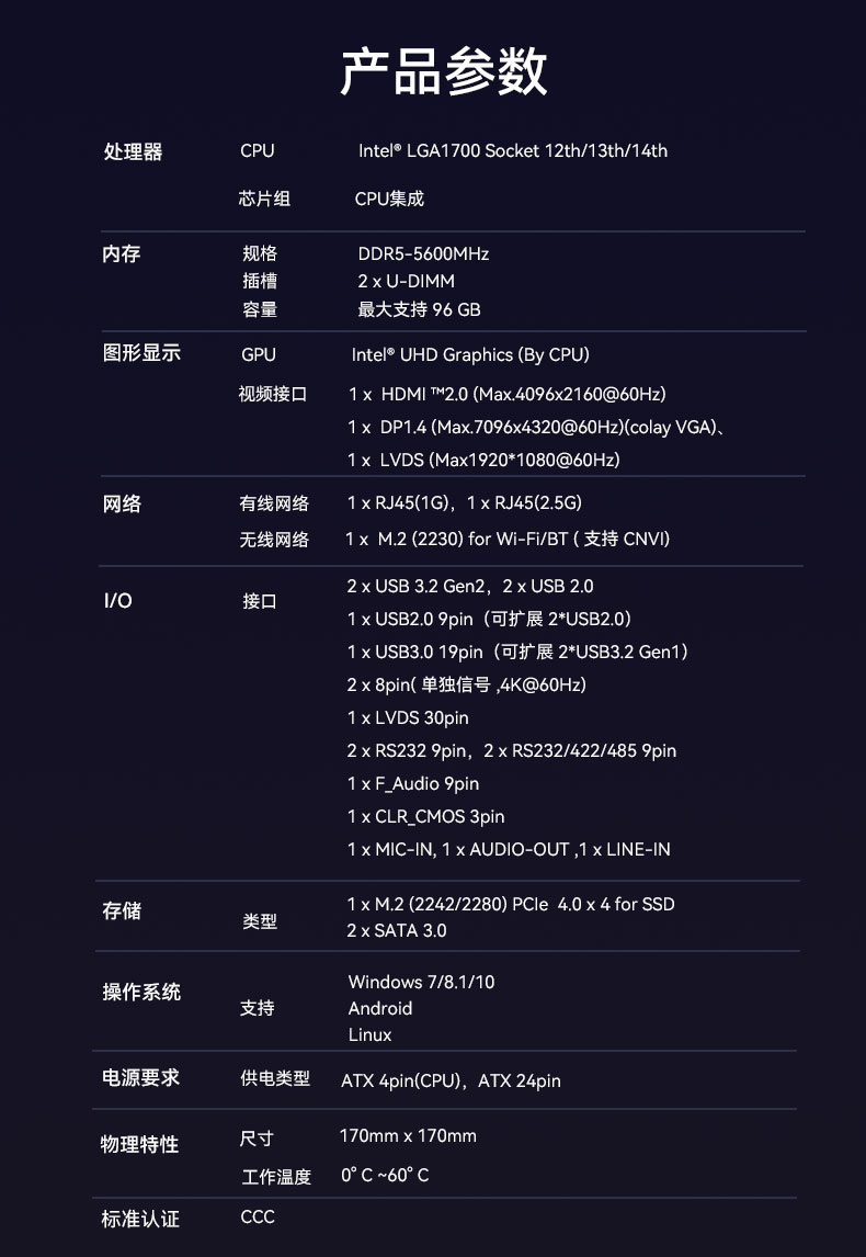 南宫NG·28(中国)相信品牌力量科技嵌入式主板IB5-8131采用Intel® B760 芯片组,支持Intel® 第12代至14代处理器。大容量内存支持配备2个U-DIMM DDR5 内存,最大支持96GB,频率最高可达5600MHz,可灵活扩展NVMe SSD和2个SATA3.0存储。基于此特点,智能柜员机可满足设备流畅丝滑运行的功能。