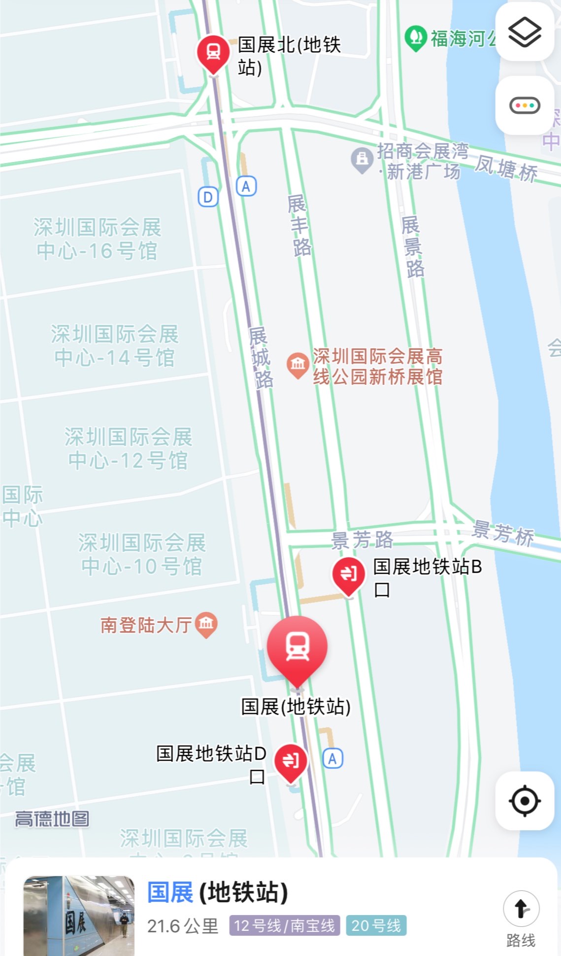 国展地铁站: 地铁12号线、20号线,C1、C2出口可直达展馆南登录大厅