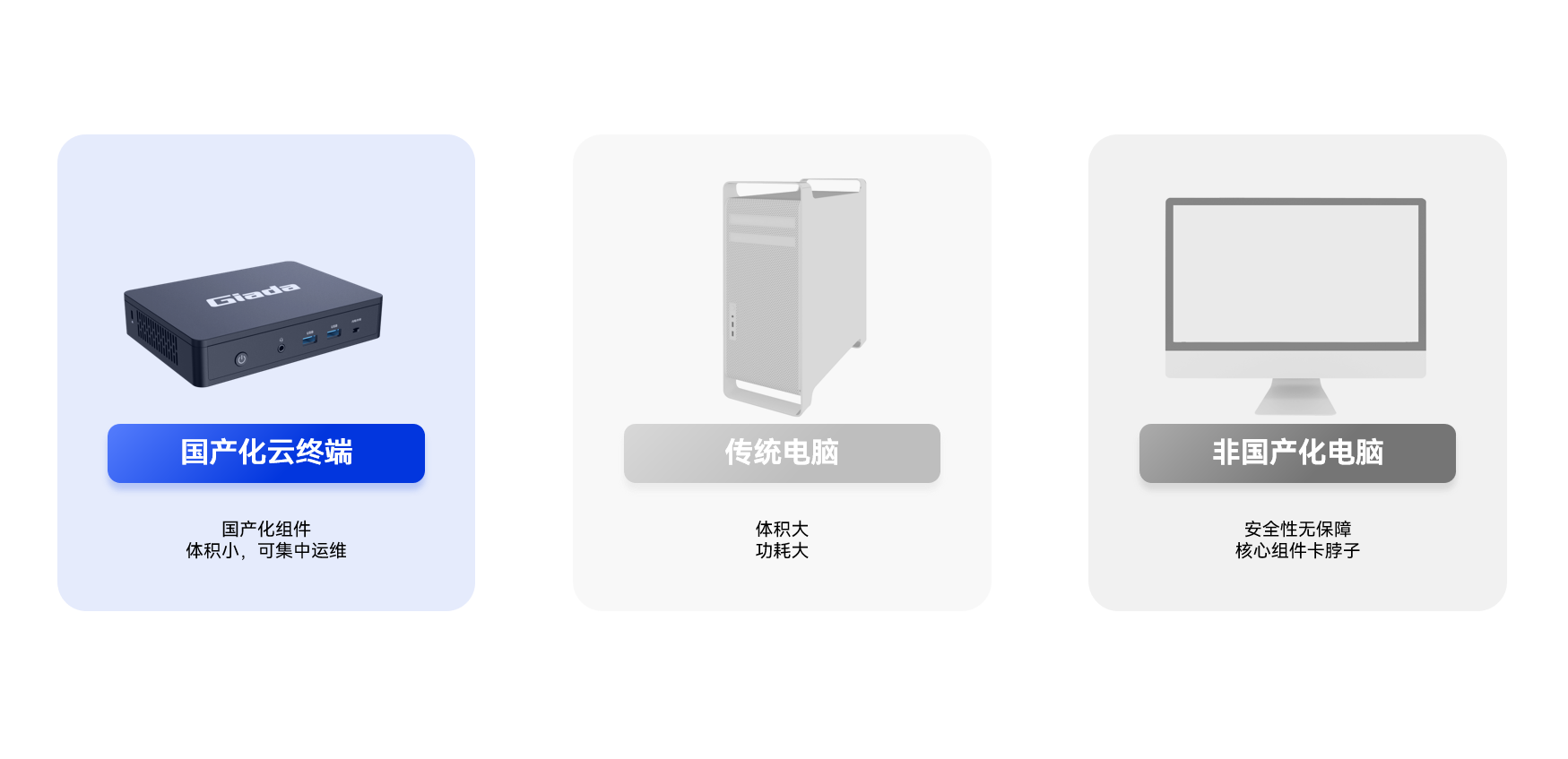 不管是哪种架构,用户只需要一个云终端设备,通过网络接入服务器,就能像用本地电脑一样办公,而数据始终存放在后台,更安全、也更好管理。