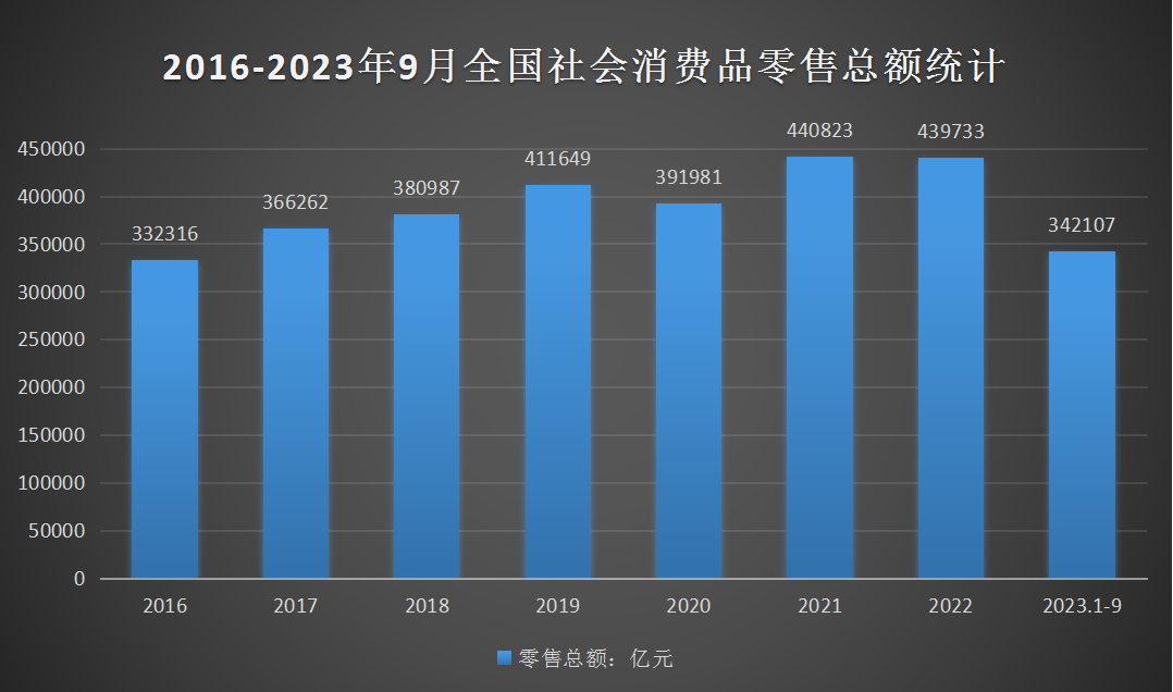 在已经过去的中秋逢国庆“双节”假期,以及即将到来的“双十一”狂欢,出行意愿强烈,消费氛围热涨,消费活力持续迸发。随着国家一系列促消费活动的开展,促进零售、汽车、家居消费等政策措施落地,消费对经济发展的基础性作用得到增强,呈现持续恢复态势。据国家统计局最新数据,9月份,社会消费品零售总额39826亿元,同比增长5.5%,前三季度,社会消费品零售总额34.2万亿元,同比增长6.8%。特色步行街、重点商圈人气旺盛,实体零售稳步增长,限额以上百货店、便利店、专业店、品牌专卖店零售额同比分别增长7.7%、7.5%、4.3%和3.1%。