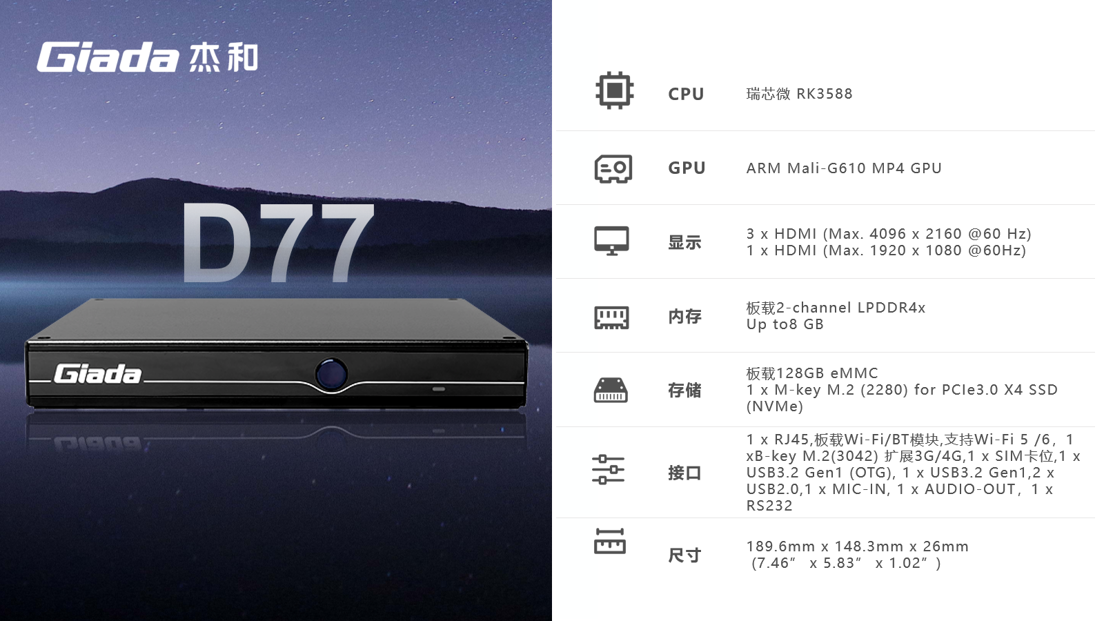 AIoT的落地场景包括智慧工业、智慧零售、智慧社区、智慧城市、智能显示、医疗健康等领域,在实际落地时,对物联网硬件设备的AI算力、数据运算、存储能力,稳定性及可扩展性能等提出更高要求,Giada南宫NG·28(中国)相信品牌力量科技作为行业领先的物联网数智化技术服务商,深入布局AIoT领域,推出AI产品系列,包括3.5寸主板、嵌入式整机、边缘计算盒子等,全方位覆盖了入门级到高性能级,满足不同应用场景的需求,为用户赋能。